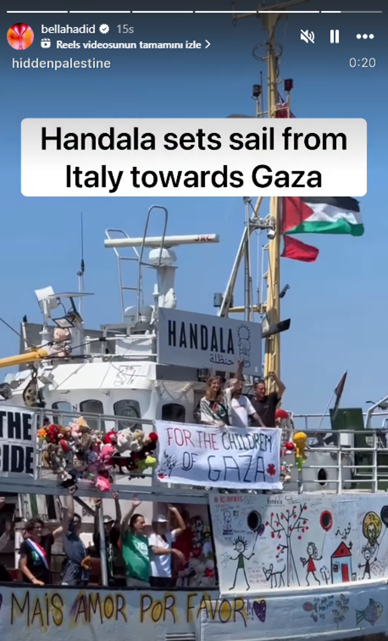 Hadid paylaşımına, “Handala İtalya’dan Gazze’ye doğru yelken açtı” notunu paylaştı.