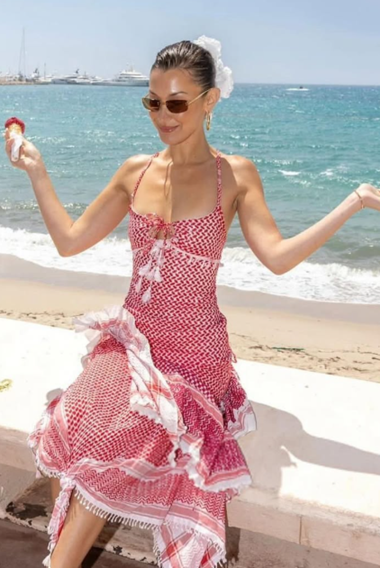 HABER MERKEZİ- Filistin’e verdiği güçlü destekle bilinen Hadid, daha önce Filistin direnişinin sembolü olan karpuz dilimi şeklinde boyanmış ve üzerinde “Filistin, Filistinlilere aittir.” yazan bir el resmi paylaşmıştı.